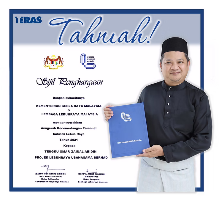 From our perspective, Tengku Omar receiving this award is the perfect achievement to inspiring the TERAS team, and the industry, towards inculcating our professional commitment and drive for innovation within the highway industry.